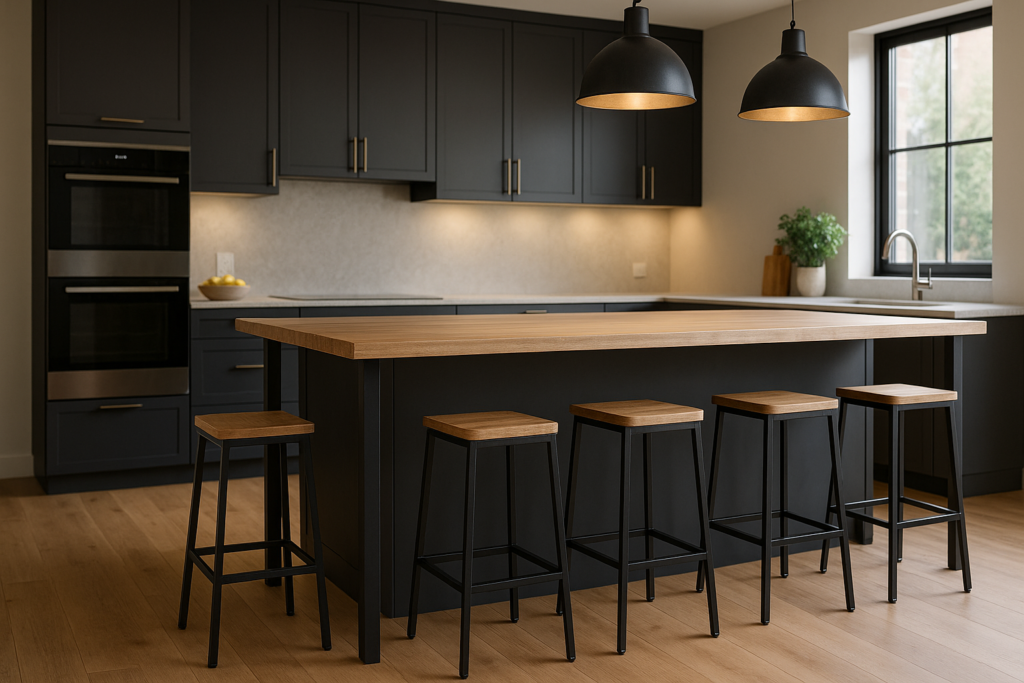 Największy urok hokerów industrialnych polega na balansie między surowym metalem a ciepłym drewnem. Ten kontrast sprawia, że wnętrze nabiera przytulności, zachowując jednocześnie industrialny pazur. Inspirujące zestawienia znajdziesz w artykule kuchnia w stylu loft — jak dobrać hokery industrialne.